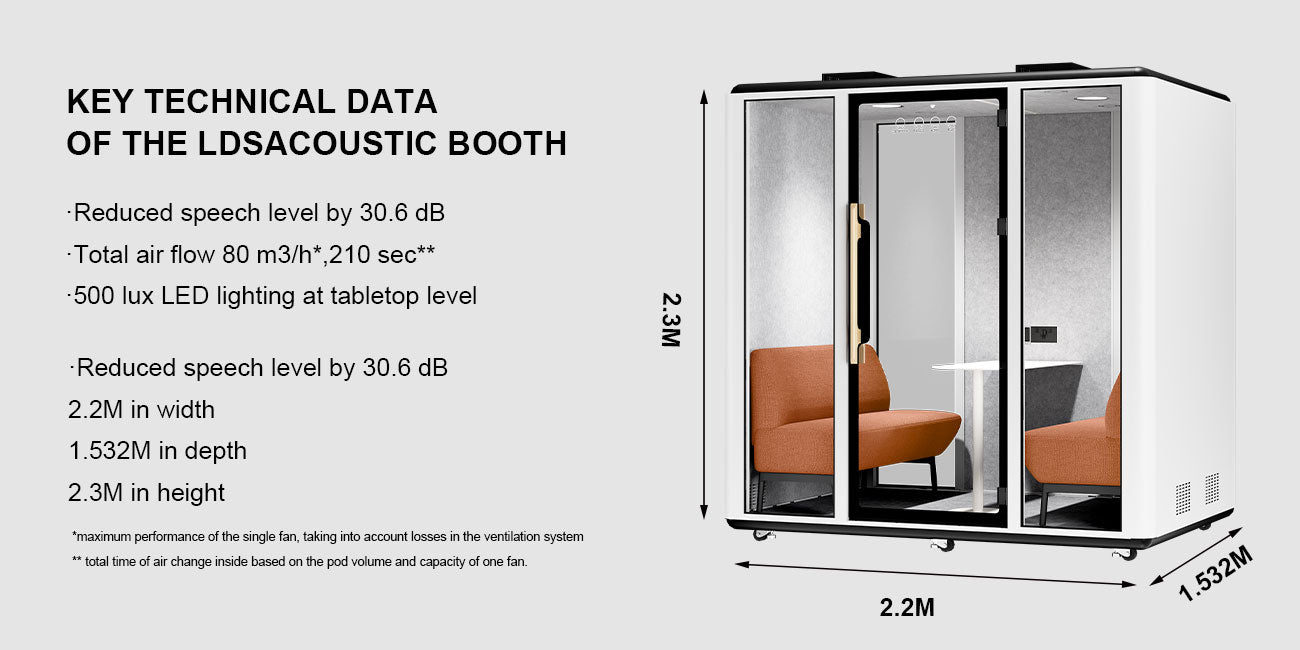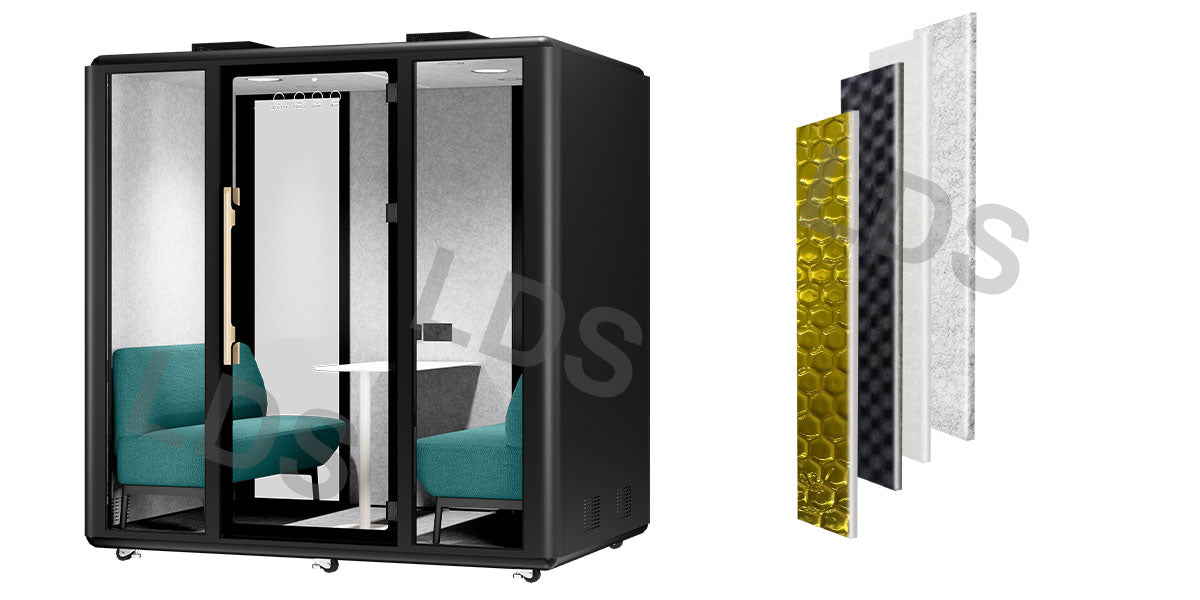 The lds L acoustic booth offers a practical alternative to traditional conference rooms. Designed for larger groups, it is well suited for business meetings, presentations, team discussions, and group video conferences, supporting both in-person and hybrid collaboration.